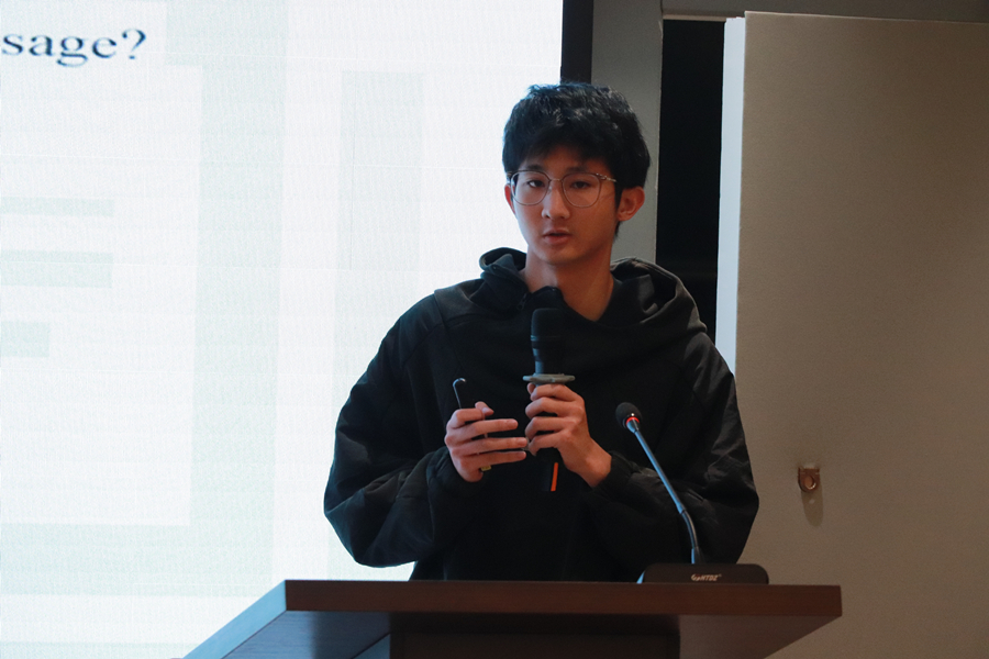 徐超作指导发言。他强调专业考级的重要性,并从英语专四的备考时间,考试时间的变动,复习资料的选择,做题顺序及考试状态等方面作出详细讲解,为备战英语专业四级考试的同学进行指导。石子豪从考试的基本要求,考试题型,考试流程三个方面进行了分享,他强调要以点为面,通过考试来促进各方面的学习。石子豪针对听力中涉及的词汇,发音,音系规则,口音给出相应的提升方法,并向同学们推荐了助力备战专四的词典和发音视频。学生嘉宾陈家怡和吴雨晟分别上台,分享了自己关于词汇、语法和完形填空,以及阅读和写作等方面的经验。他们建议同学们要深入了解单词,熟练背诵各语法,并总结了完形填空的答题方法,强调做题效率以及写作技巧。此外,他们都强调词汇的重要性,鼓励同学们合理安排时间备考。