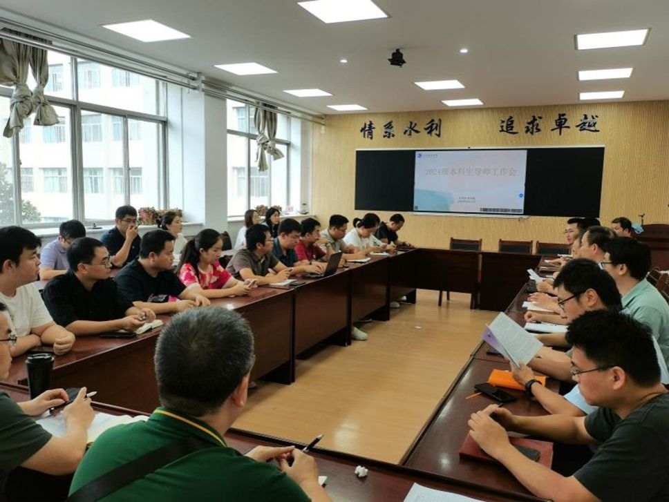 王瑞生总结讲话。他指出,班级导师工作是一项责任重大、使命光荣的工作。他强调,作为一名合格的班级导师秉持“情系水利、追求卓越”的理念,以高度的责任心,把学生的发展放在突出位置,引导学生扣好大学第一粒扣子;要有主动性,要经常深入学生了解学生所思所想、所需所盼;要有侧重点,抓好新生的院情院史教育、专业教育及学风建设;要有执行力,工作中要有安排更要有落实,踏踏实实完成每一项任务;要有敏感性,对一些苗头性、倾向性问题要及时发现、妥善处置;要有亲和力,用心做导师工作,深入学生和学生交朋友,做学生成长的引路人,为培养德智体美劳综合发展的高素质人才贡献力量。