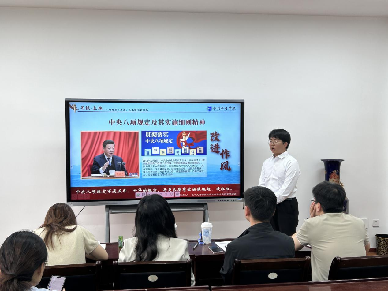 各位参赛选手在方寸讲台立足青年视角,以见微知著的青春叙事,将作风建设的大命题转化为可知可感的身边课堂。本科生第三党支部李宝以《作风砥新程 青春筑一流》为题,分别从“寻根·立魂、对标·励行、赋能·致远”三个方面深刻讲解作为新时代大学生,如何践行落实中央八项规定精神;清洁能源高效利用研究生党支部胡佳怡以《一座雕像背后的水利人生》为题,勉励水利学子以李仪祉为榜样,以优良作风为青春底色,在“双一流”建设的征程中奋勇前行,让艰苦奋斗、求真务实、廉洁奉公的精神在新时代焕发新的生机与活力。