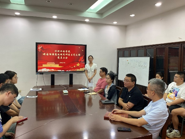 戈振国带领大家重温入党誓词,并以“有一分热,发一分光,做有理想、敢担当、能吃苦、肯奋斗的新时代好青年”为主题,为支部党员和积极分子讲党课。他结合自己工作实际,讲述了身为党员同志应该做什么、怎么做,指出作为党员该做到不忘初心、牢记使命,充分发挥党员先锋模范作用,砥砺奋进,矢志科技报国,努力使自己成为一名新时代青年大学生。