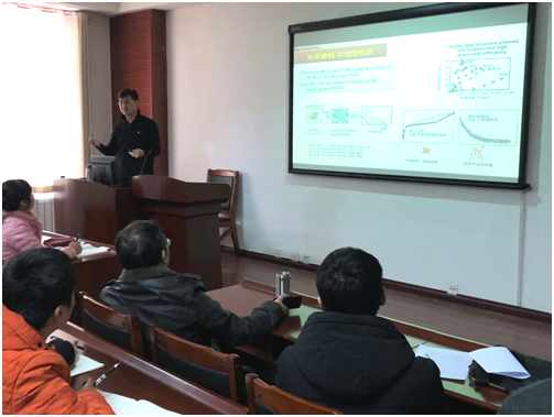 报告中,潘教授首先介绍了溶解性天然有机质非理想环境变化、外来碳纳米颗粒作用和环境持久型自由基等对土壤环境中有机污染物的迁移转化和归趋影响。随后,潘教授以云南宣威来宾镇虎头村土壤污染物调查为例,详细讲解了土壤中有机污染物的降解过程,主要是多环芳烃降解过程中产生的自由基及其对环境的效应,并鼓励与会的青年教师和研究生们积极开展具有区域特色的研究。报告结束后,潘教授热情回答了在场师生提出的问题。潘教授的报告内容丰富、研究领域造诣深厚,现场交流气氛活跃。
