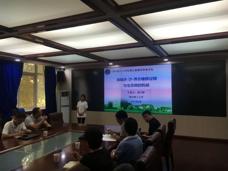 宋孝玉主任首先向青年学者介绍水文水资源系基本情况及发展规划。杨雪博士、成玉婷博士、方伟博士分别作了题为“Changing climate impact on runoff prediction in ungauged basins”、“流沙水-沙-养分输移过程与生态调控机制”、“干旱胁迫下黄土高原生态系统脆弱性概率评估”的学术报告。本次青年学者论坛为304永利集团官网入口水文水资源系与青年学者搭建了良好的学术交流平台,也为将来开展实质性的合作与交流提供了良好的机会,活动取得了圆满成功。