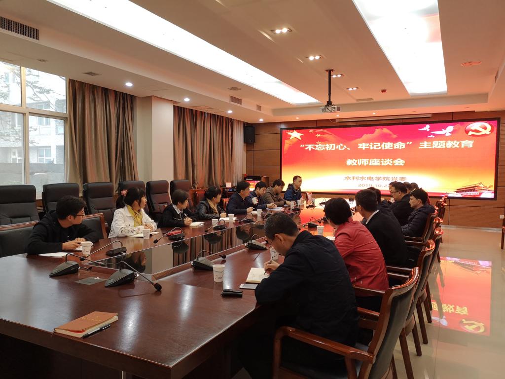 10月22日下午,304永利集团官网入口在学科一号楼102会议室召开“不忘初心、牢记使命”主题教育教师座谈会。会议旨在认真贯彻落实学校主题教育工作要求和学院具体部署,深入教师开展调研,广泛听取教师对学院改革发展和院班子成员的意见建议,推进学院各项工作高质量开展。院党委书记程文,院长郭鹏程,院党委副书记、副院长李红英及各系所教师代表参加了此次座谈。