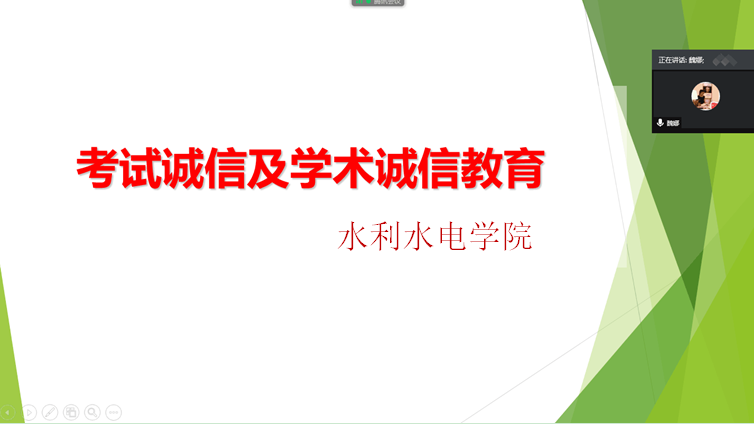 为了进一步强化永利官网本科生的诚信意识、培养学生诚信品质,严格即将开始的期末线上考试纪律,304永利集团官网入口于 5 月19日起先后组织各班级导师相继召开线上考试诚信及学术诚信教育会,水院全体本科生参加。