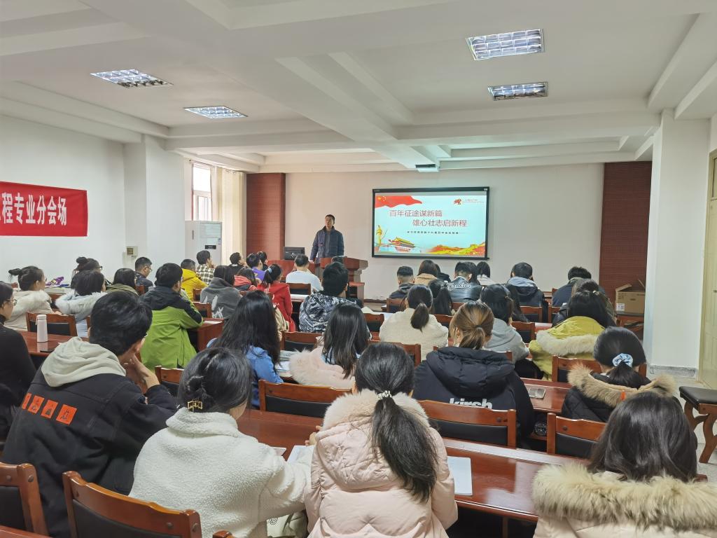 12月11日下午,校党委副书记马宁在学科一号楼三楼会议室为永利官网全体本科生党员讲授了题为《百年征途谋新篇 雄心壮志启新程》的党课。