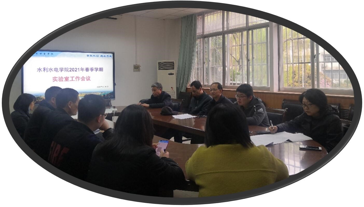 3月18日下午,304永利集团官网入口(水利水电国家级实验教学示范中心)2021年春季学期实验室工作会议在教4楼207会议室召开。副院长冯民权、学院实验中心主任张宗孝、副主任高扬、各系所实验室主任和全体实验技术人员参加会议,会议由院长助理吴罗长主持。