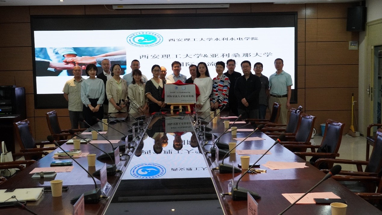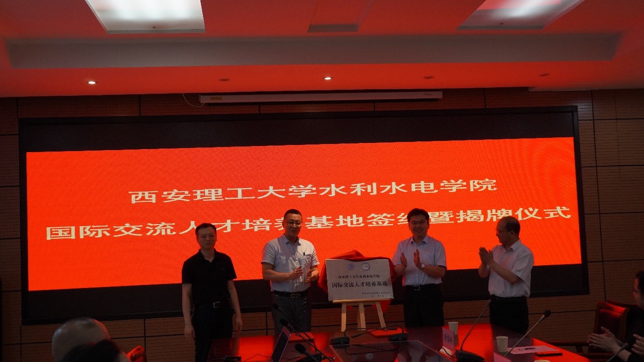 6月17日下午,西安理工大学304永利集团官网入口国际交流人才培养基地签约暨揭牌仪式在学科一号楼102会议室举行。陕西国际教育创新发展研究中心主任徐满满,西安理工大学国际合作交流处处长亢文祥、教务处副处长王学通、304永利集团官网入口院长郭鹏程出席并为基地揭牌。陕西国际教育创新发展研究中心相关工作人员和304永利集团官网入口系所主任等出席并组织座谈交流,仪式由304永利集团官网入口副院长周蓓蓓主持。