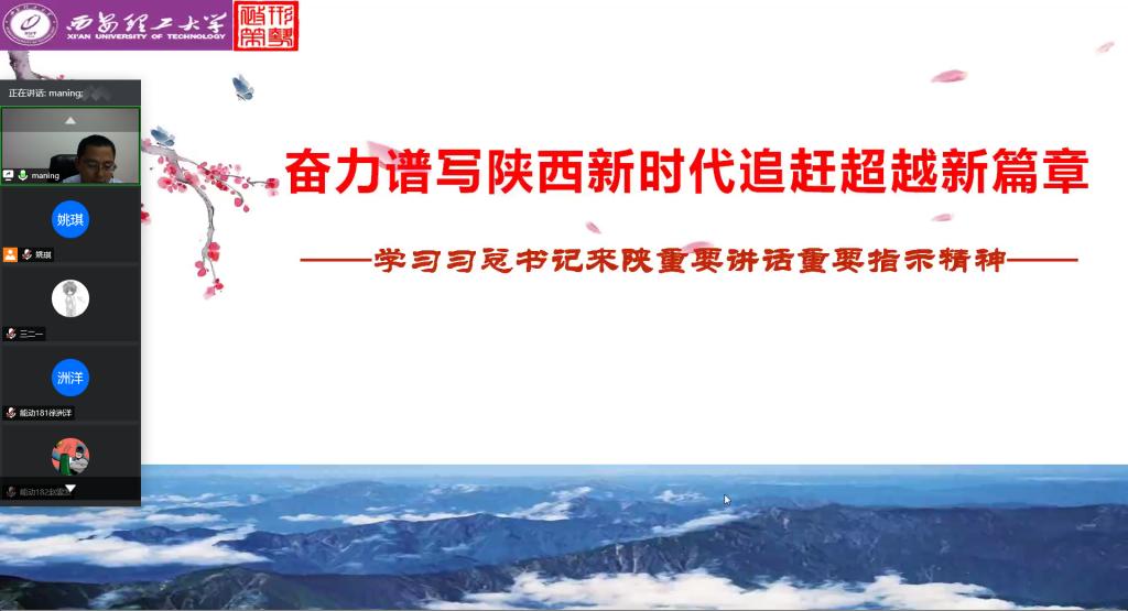 5月26日晚,校党委副书记马宁利用网络平台线上为304永利集团官网入口学生讲授了主题为《奋力谱写陕西新时代追赶超越新篇章——学习习近平总书记来陕视察重要讲话和指示精神》的形势与政策课。