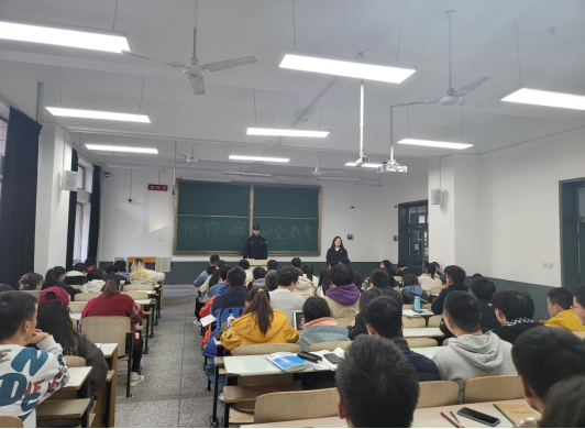会上,曹刚警官结合工作经历和经典案例,从网络贷款、刷单返利、“杀猪盘”、冒充电商物流客服、冒充熟人或老师、冒充“公检法”、虚假投资理财、虚假购物、注销“校园贷”、网络游戏虚假交易等方面讲述了常见诈骗类型,提出了“四不”和“一及时”防范诈骗宝典,分析了应对方法和补救措施,提醒同学们时刻保持清醒的认知,引导在校学生提高分辨是非的能力,增强自我保护意识,掌握基本的安全防范技能。