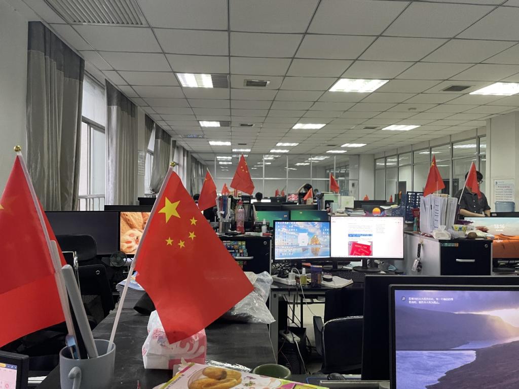 活动中,分布在不同教研室的学生党员集中开展卫生清理,大家撸起袖子加油干,清理各类卫生死角、堆物堆料、擦拭窗桌。同时针对教研室中的老旧插座、电线堆叠问题进行排查和整理,在开关、水龙头周围粘贴节电、节水告示,共同打造一个安全舒适的科研环境。最后,同志们用五星红旗装饰教研室,鲜艳的中国红带给同志们每天奋斗的活力,科研之路固有崎岖,我们唯有将先辈们开国以来积极进取、艰苦奋斗的精神贯穿于个人成长之路中,才能走好科研路,成为强国之辈。