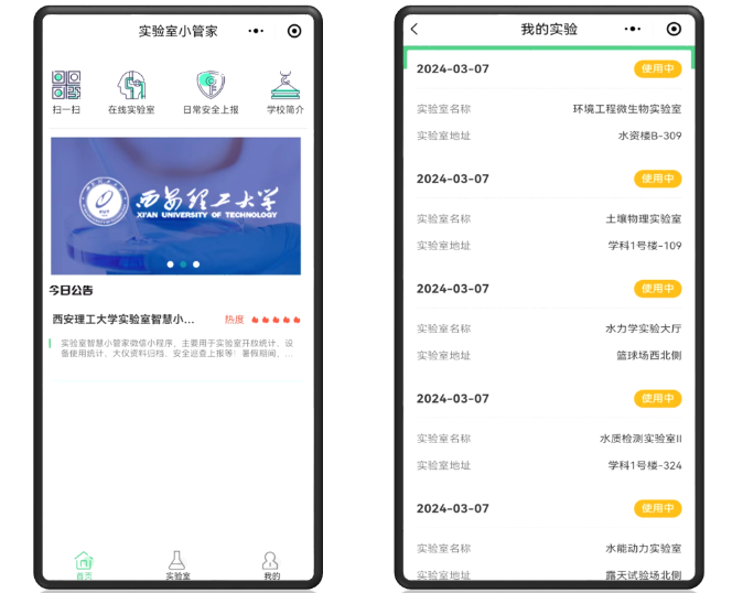 为进一步加强和规范实验室管理工作,304永利集团官网入口发布了《304永利集团官网入口关于规范实验室微信小程序管理和加强实验室门禁系统管理的通知》,开发了“实验室小管家”微信小程序,提升信息化水平,推进实验室开放及大型仪器共享,强化学生安全责任意识,保障实验室正常有序运行。