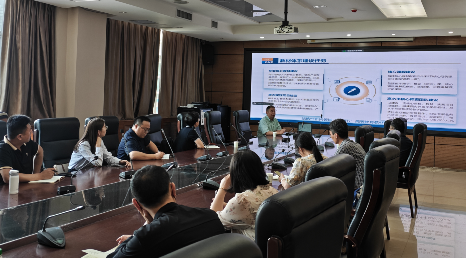为推动探索基于知识图谱的新型教材建设与教育数字化转型,助力战略性新兴领域教材体系发展,建设数字赋能的高质量教材体系,学院于5月27日下午2:30在学科一号楼102会议室举办了“新兴领域教材建设工作研讨会”。会议特别邀请了中国教育装备行业协会高教装备分会副秘书长、重点领域教学资源建设项目管理办公室副主任许长江,做了《教育知识图谱建设与新型教学应用》的报告。相关一流课程负责人及教师代表参加会议,会议由学院副院长周蓓蓓主持。