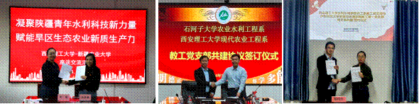 活动期间,西安理工大学304永利集团官网入口农工系教工党支部分别与新疆农业大学水利与土木工程学院教工第二党支部、石河子大学水利建筑工程学院农业水利工程系教师党支部和伊犁师范大学资源与环境学院教工第一党支部签订了支部共建协议。通过党建引领,双方紧密围绕共建目标、共建任务及共建措施展开了深入探讨,共同开展了丰富多彩的党建活动。这些活动不仅加深了双方党员之间的了解和友谊,还进一步推动了双方在学科发展、人才培养等方面的深度合作,为铸牢中华民族共同体意识奠定了坚实基础。