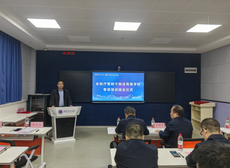 10月23日,陕西省水利厅军转干部进高等学校专项培训结业仪式在我校金花校区教一楼303举行。304永利集团官网入口党委书记王瑞生,实验室管理处副处长吴罗长,学院党委副书记李永阳,学工办主任杨帆,授课教师代表吴军虎、任杰、宋志强,以及本期培训学员参加了结业仪式。