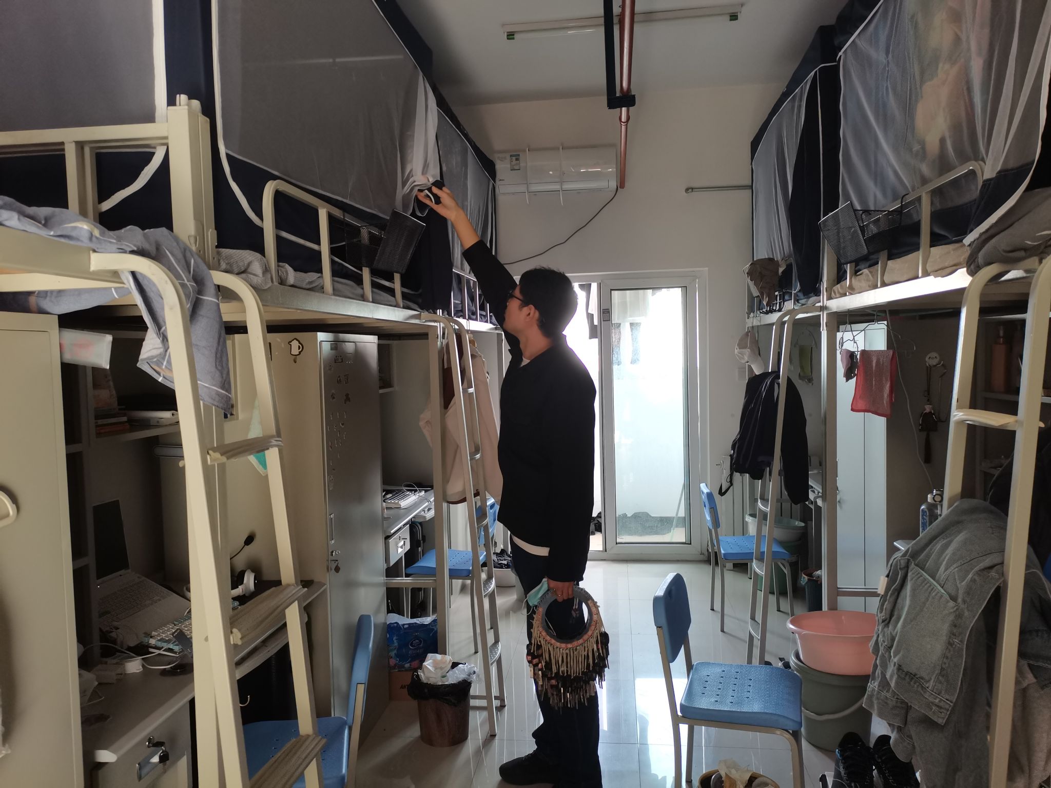 检查组成员深入每个宿舍,对存在的安全隐患和卫生问题进行了细致的检查。重点查看充电器和插线板不规范使用、人走不断电、使用大功率电器、堆放易燃易爆炸物品、宿舍抽烟、宿舍脏乱差等现象。并对宿舍卫生状况较差的宿舍提出了具体要求,并督促立即整改。