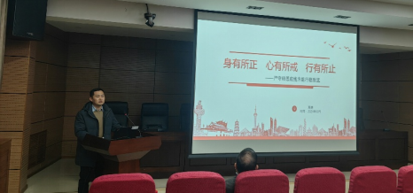 12月6日,304永利集团官网入口在学科一号楼103报告厅举办全院青年教师“五课一交流”活动第一讲——师德师风培育与养成。校纪委、监察专员办公室纪检监察室主任高博受邀参加活动,并作《身有所正、心有所戒、行有所止——严守师德底线方能行稳致远》专题报告。活动由学院党委书记王瑞生主持。