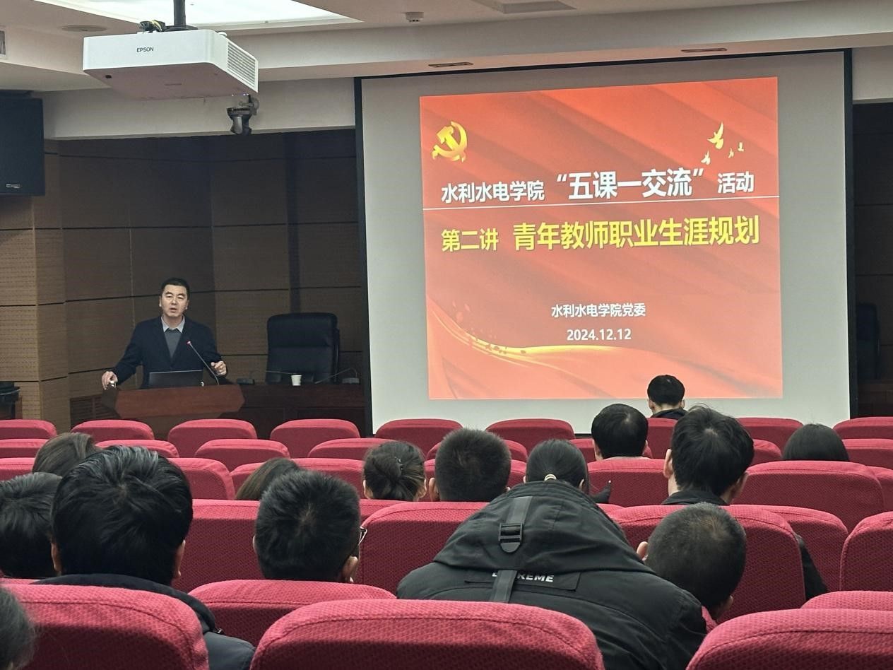 12月12日,永利官网在学科一号楼报告厅举办青年教师“五课一交流”活动第二讲。院长李炎隆教授以《青年教师职业生涯规划》为题作报告。活动由院党委书记王瑞生主持。
