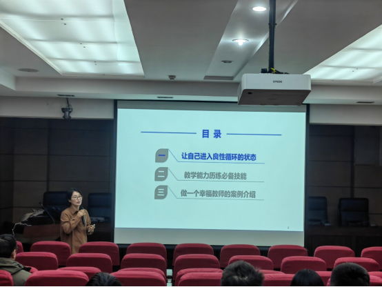 12月19日,304永利集团官网入口在学科一号楼103报告厅举办青年教师“五课一交流”活动第三讲。学院副院长周蓓蓓教授以《多方位历练教学技能,做一名幸福的人民教师——教学能力历练浅谈》为题作报告,学院40余名青年教师参加了报告会。