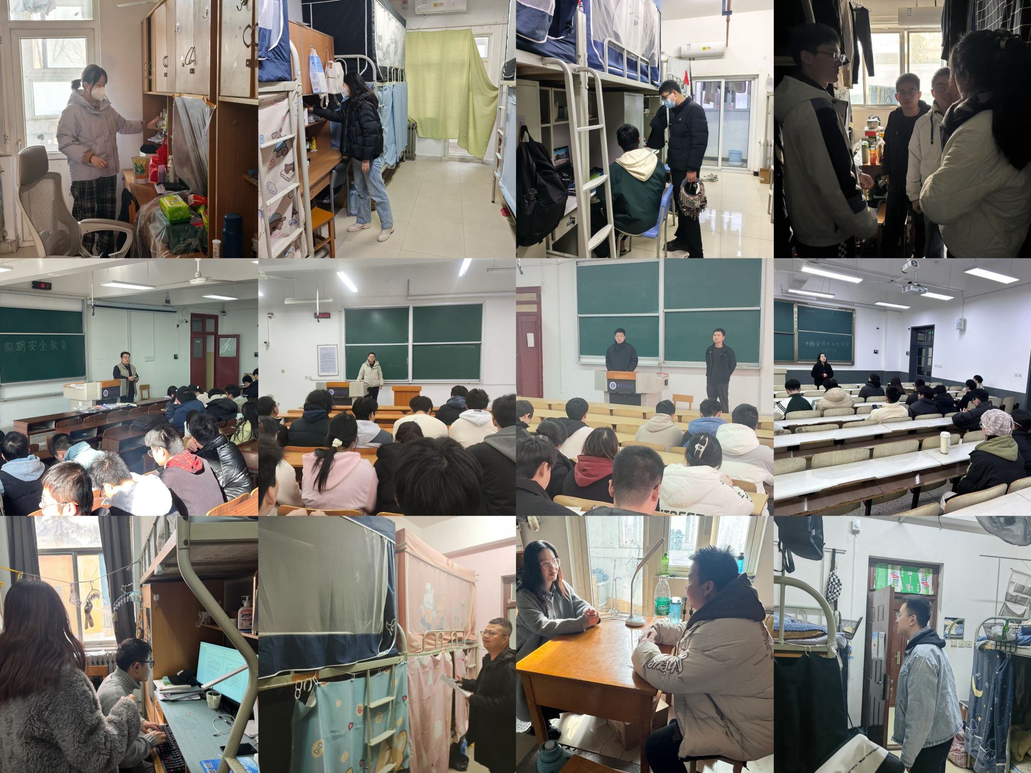 各年级辅导员深入学生宿舍,全方位排查宿舍安全隐患,对发现的问题及时记录并督促现场整改,把好宿舍稳定安全关。