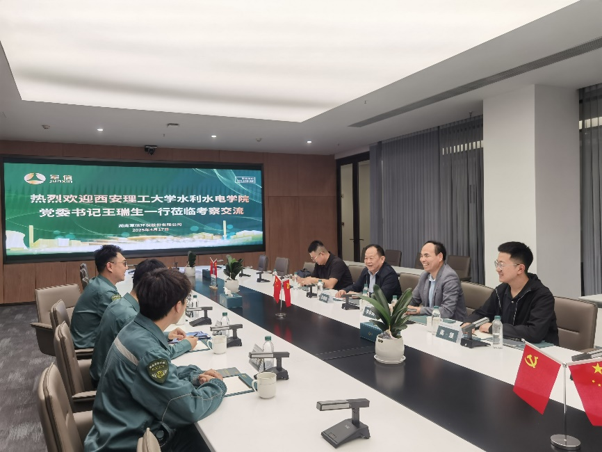 中国电建集团中南勘测设计研究院有限公司党委委员、总会计师杨光辉,湖南省水利水电勘测设计规划研究总院有限公司党委副书记、纪委书记颜国保,湖南军信环保股份有限公司人事资源总监吴哲夫等单位负责人对王瑞生书记一行的到来表示欢迎。他们分别详细介绍了公司的发展历程、业务布局、核心优势、技术创新体系及未来发展规划,以及西安理工大学304永利集团官网入口校友目前在单位工作情况。希望双方依托科研资源优势,继续推进交流合作,积极深化校企协同创新,在人才联合培养、科研合作交流、技术服务等方面取得更大的成绩。