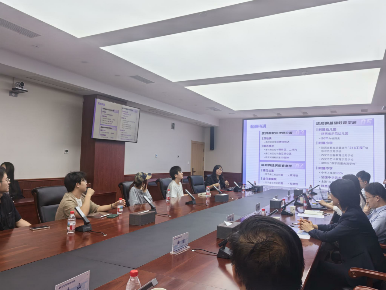 在人才招聘宣讲会上,周蓓蓓、曲植向与会博士、博士后详细解读了我校人才引进政策,重点推介了学院在科研平台支撑、人才孵化支持、地方政策红利等方面的差异化优势,并发出诚挚邀请。会议现场反响热烈,多人就研究方向匹配、团队融入机制等细节与我方人员深入交流。