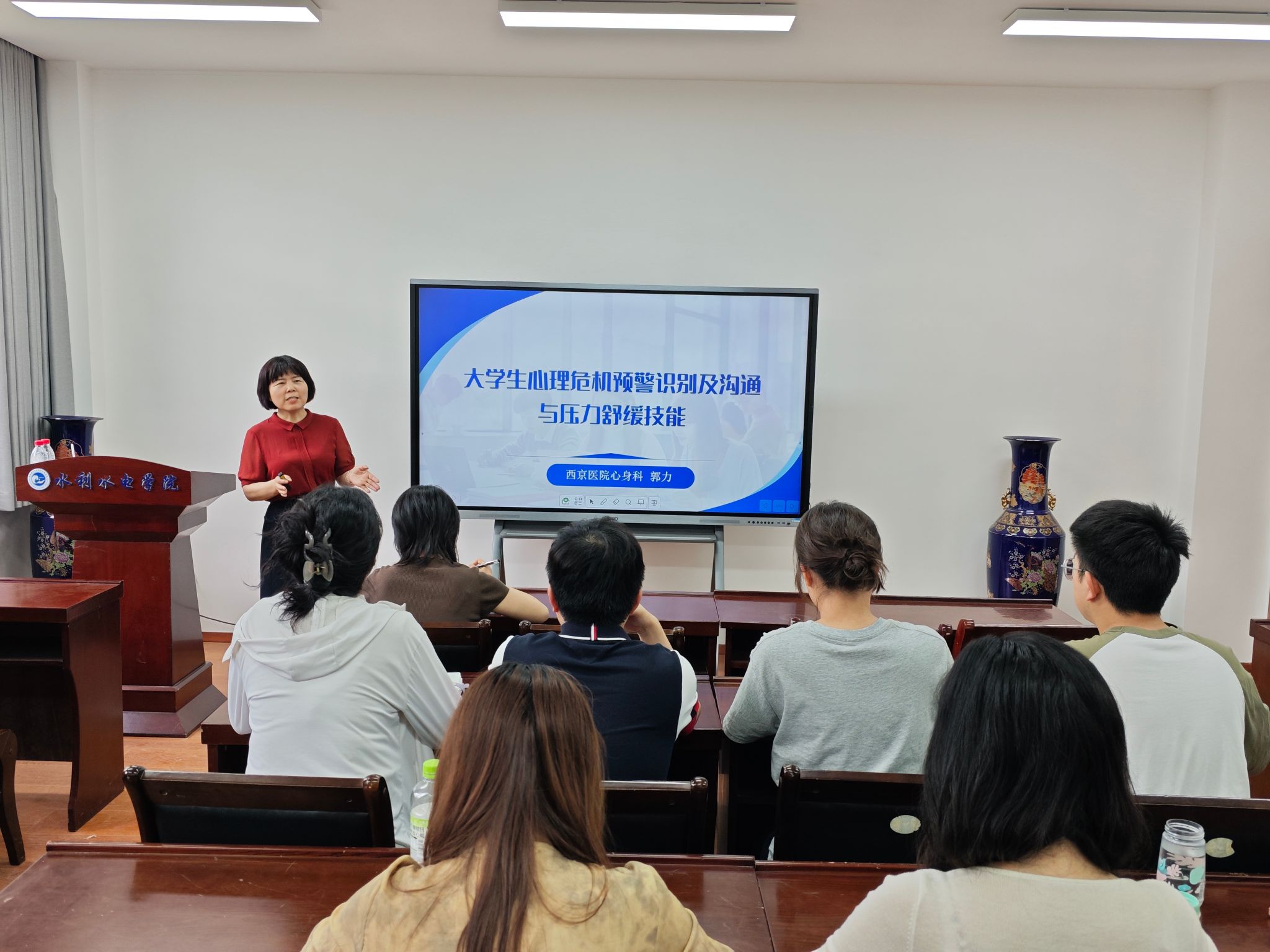为进一步提升辅导员心理健康教育工作能力,更好地守护学生心理健康,5月15日,永利官网在教四208会议室举办辅导员心理健康专题培训,特邀空军军医大学西京医院心身科副主任医师郭力来学院作心理健康专题讲座。学院全体辅导员、兄弟学院部分辅导员参加讲座。