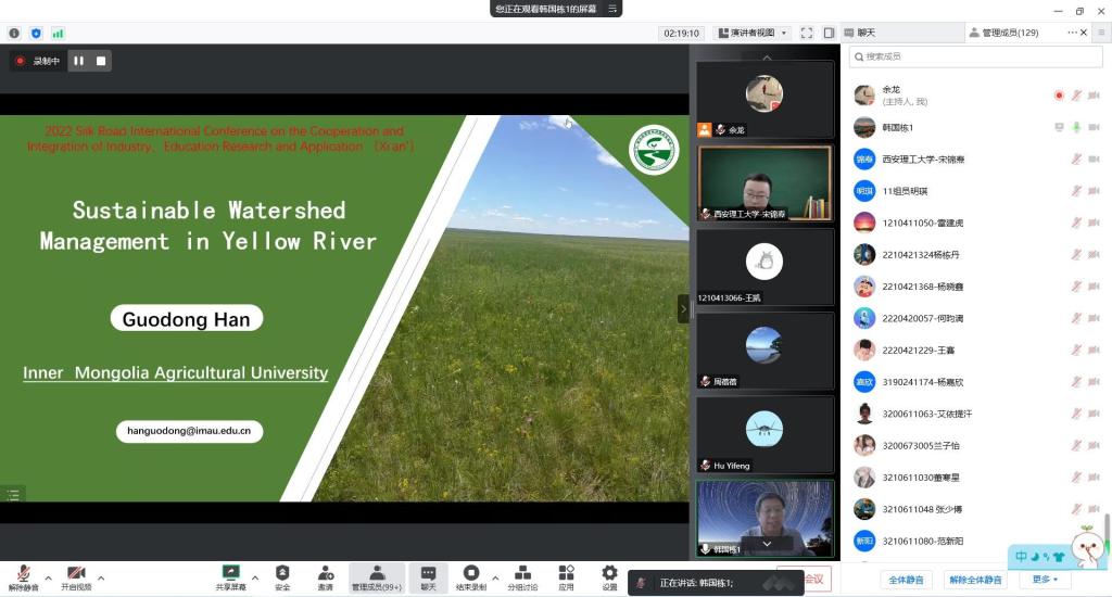 2022年11月11日, 2022丝绸之路国际产学研用合作会议(2022 Silk Road International Conference on the Cooperation and Integration of Industry, Education Research and Application)的高原生态环保与黄河高质量发展领域议题二——流域环境生态治理与创新工程成功举办,会议由我校304永利集团官网入口、土木建筑工程学院和西北旱区生态水利国家重点实验室联合承办,今年是我校第三年承办该议题。