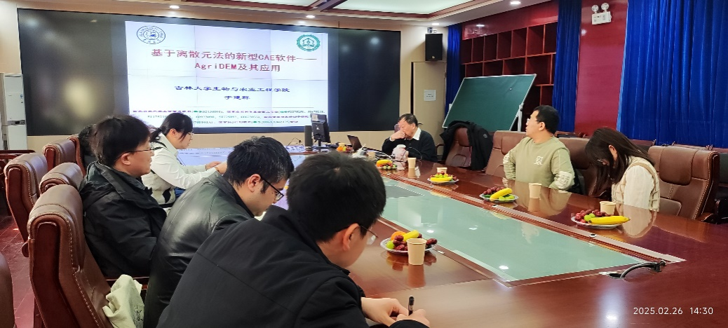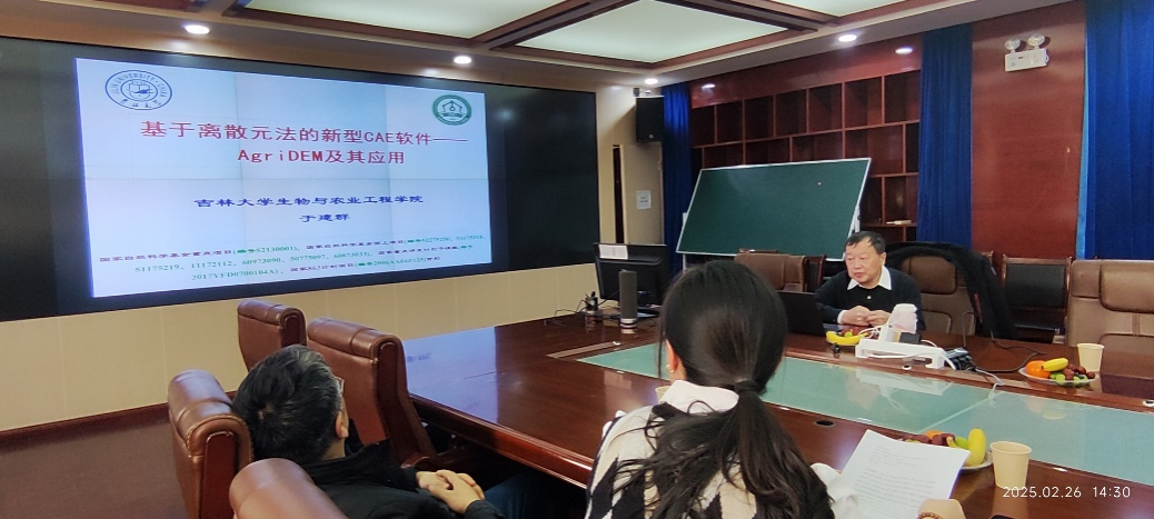 2月26日,吉林大学生物与农业工程学院农业工程学科于建群教授应邀在我校金花校区学科1号楼311会议室作了题目为《基于离散元法的新型CAE软件—AgriDEM及其应用》的学术报告。304永利集团官网入口农业工程学科带头人王全九教授及部分师生参加了本次报告。报告由系主任曲植副教授主持。