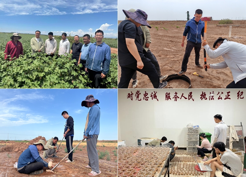 为促进产学研结合,提升研究生创新能力,推动科研成果转化,304永利集团官网入口旱区绿色高效农业研究团队党支部利用暑期开展了“奔走在西部干旱地区,把农业技术带到田间地头”主题活动。支部部分成员与导学团队老师前往新疆维吾尔自治区阿克苏地区台兰河灌区,与当地工作人员、农户开展座谈交流、实地调查、样品采集处理等。