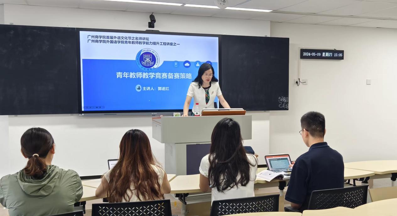 5月9日下午,beat365平台官方网站在八教407教室举行了第七届青年教师教学大赛暨2024年外研社“教学之星”大赛专题培训讲座,由beat365平台官方网站院长郭遂红教授主讲,参加第七届青年教师教学大赛以及2024年外研社“教学之星”大赛的老师和学院部分教师参加了专题培训。本次专题培训讲座也是beat365平台官方网站首届外语文化节之名师讲坛以及beat365平台官方网站青年教师教学能力提升工程讲座之一。