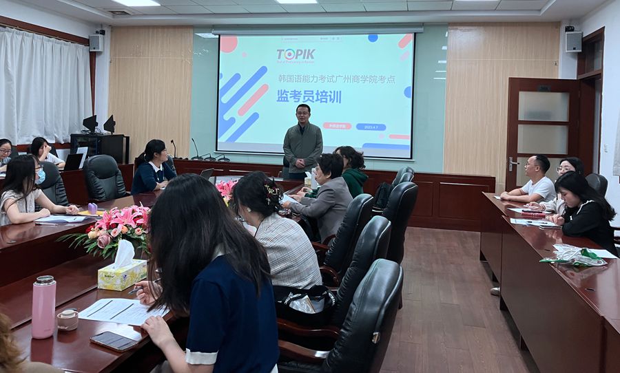4月7日,beat365官网在第二行政楼308会议室举行了韩国语能力考试监考员培训会,由本次考试考务负责人洪希琳老师主讲。洪希琳从考场分布、考场布置、身份核验、考场纪律、监考流程、材料填写、注意事项等方面进行了详细的讲解,明确了各位监考老师的工作职责与工作要求。为确保考务工作的顺利开展,beat365官网与教务处、保卫处、总务处等部门通力合作,从考试报名、安检器材准备、考场布置,到安全防疫、后勤保障等环节进行了周密的部署,以保证考试的顺利进行。beat365平台官方网站副院长袁鑫在监考员培训会作发言,强调本次考试的重要性。