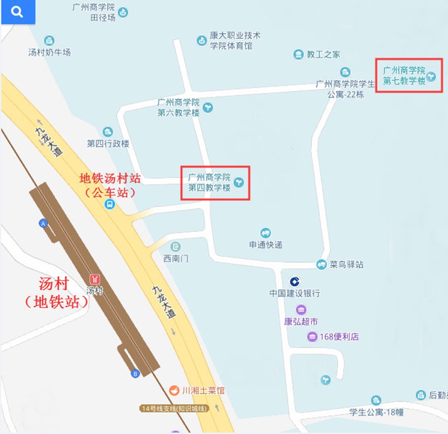4.自驾车者也可从不同的线路进入广汕公路(G324)→九龙大道→学校大门(前行500米)。