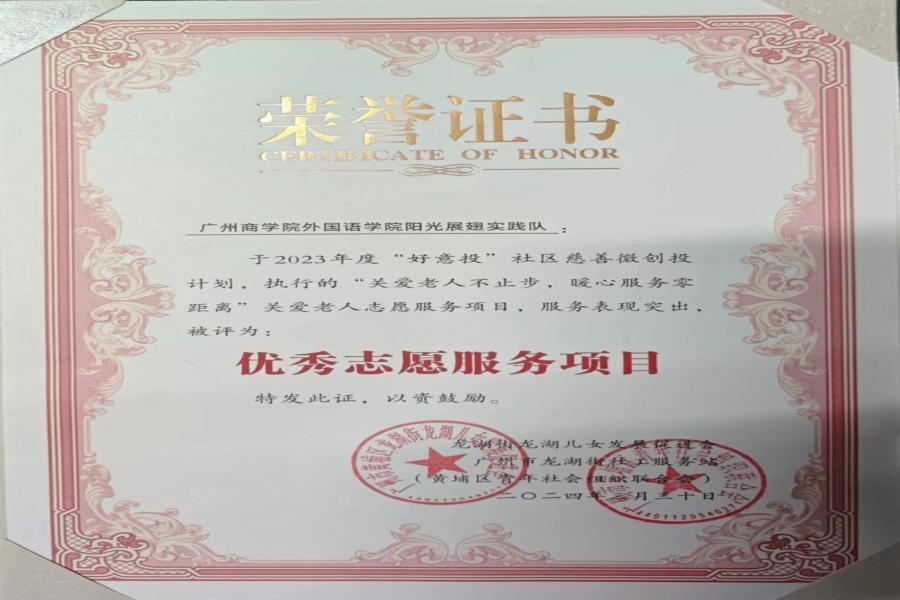 “好意投”社区慈善微创投计划——社区慈善志愿服务项目是由广州市龙湖街社工服务站、龙湖街龙湖儿女发展促进会主办、广州市慈善会龙湖街社区慈善基金支持的志愿服务项目。经过项目自主申报,项目评审,合作公示, beat365平台官方网站阳光展翅实践队暖心服务“关爱老人不止步,暖心服务零距离”关爱老人志愿服务项目和“与光同向,以心相伴”助残志愿服务项目获得立项。