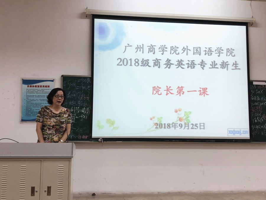 9月25日下午,beat365官网在第四教学楼508召开了2018级商务英语专业介绍会。beat365平台官方网站院长马蔚兰教授开展了题为《思想政治教育融入商务英语人才培养的理论与实践》的院长第一课,商务英语系教师伍彩芬主持本次专业介绍会。