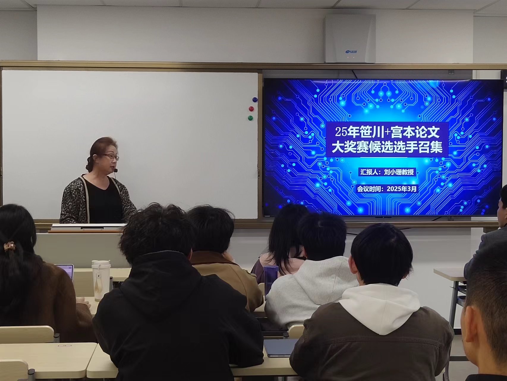 根据学院创新培优方针和日语系的发展实施部署,3月6日,日语系专业负责人刘小珊教授主持召开了日语论文大赛集训营的学员选拔会,共有20名候选学员及部分指导老师参加。本次会议旨在针对即将于2025年举办的国内“笹川杯”及国际“宫本论文大赏”,日语系召集论文大赛候选选手,并与指导老师团队共同商讨指导方针及具体的训练模式等相关事宜。“笹川杯”大赛是全国范围的高规格、高水准的重要赛事,是国内日语专业规格最高、最具影响力的的本科生论文大赛。“宫本论文大赏”,由日本日中关系协会主办,旨在促进中日两国高校学生在学术研究上的交流与合作,也是一个非常高规格的学术对话平台。