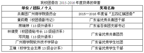 我系学生在2015-2016学年广东省团委五四表彰中获奖