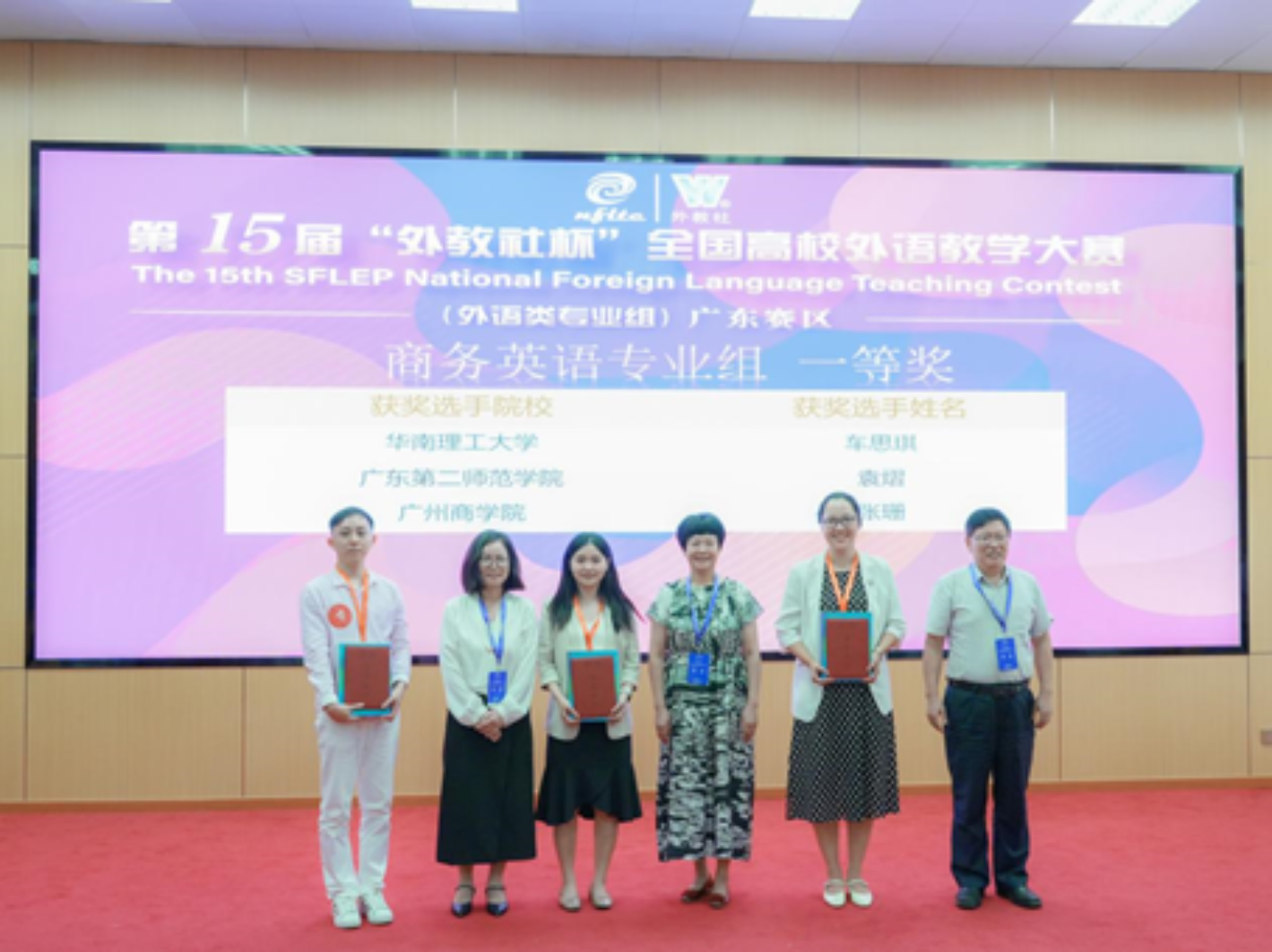 近日,第十五届“外教社杯”全国高校外语教学大赛广东赛区决赛在广州举行,大赛分为英语专业组和商务英语专业组两个组别,各大本科院校层层选拔、激烈角逐,经过初赛和复赛,每个组各选出十强选手参加决赛。beat365官网beat365平台官方网站张慧慧老师和张珊老师凭借扎实的专业功底、丰富的教学经验和创新的教学理念,在第15届“外教社杯”全国高校外语教学大赛(外语类专业组)广东赛区中脱颖而出,分别荣获英语专业组和商务英语专业组一等奖。