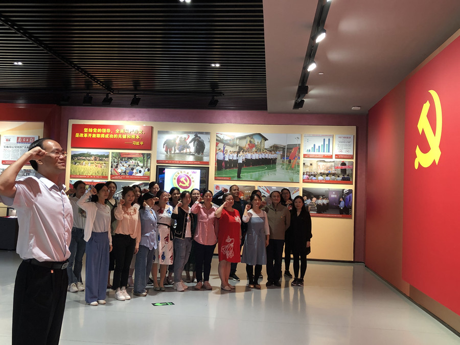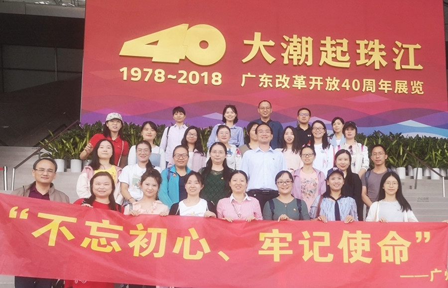 改革东风起,大潮起珠江。改革开放展览馆运用照片、实物、视频、模型、场景、雕塑和高科技手段展览全景展示了广东改革开放40年波澜壮阔的历史进程,突出展示了党的十八大以来,在以习近平同志为核心的党中央的带领下,全面深化改革,扩大广东对外开放格局,深圳充分发挥排头兵、先行地、实验区作用,奋力实现“四个走在全国前列”、当好“两个重要窗口”的新作为和新担当。教工党员一一参观了展览馆“敢为人先勇立潮头”、“增创优势砥砺前行”、“走在前列当好窗口”等六个展厅,认真听取了讲解员的生动阐释,充分了解了以“拓荒精神”,“深圳速度”,“科技引领”为核心的深圳精神内涵。大家纷纷为改革开放带来的巨变而震撼,为改革开放的巨大成就而由衷地感到自豪。参观完后 ,全体教工党员在展览馆内再次重温了入党誓词。