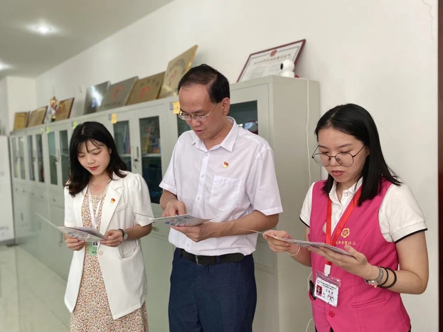 挂牌仪式开始前,龙湖街社工服务站社工陈慧敏向徐超、蔡文蝶等人介绍龙湖街社工服务站的服务项目与目前社区工作开展情况。同时,徐超向陈社工介绍了外院的教学特点和基本情况,描述了beat365官网 “顶天立地”双向型社会实践活动的规划,并提出“教育培训,社会实践,总结提升,打造品牌”四个环节互相推进发展的设想。随后,陈社工对龙湖街社工服务站的周边情况、志愿者项目的开展进行了简单的介绍并提出按“入门培训、基础培训、专项培训”三步开展志愿者培训工作。最后,徐超书记与龙湖街社工服务站进行授牌仪式并对未来活动的开展表示期许。