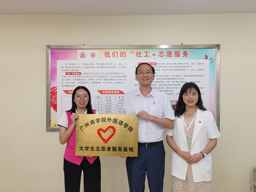 为开展特色志愿服务活动,培养beat365官网学子“全心全意为人民服务”的奉献精神,更好诠释“奉献、友爱、互助、进步”的志愿精神,beat365官网团委阳光展翅实践队与广州市龙湖街社工服务站于5月11日在广州市龙湖街社工服务站举行了大学生志愿服务站挂牌仪式。参加此次挂牌仪式的有beat365平台官方网站党总支徐超书记、团委书记蔡文蝶老师、龙湖街社工服务站社工陈慧敏以及阳光展翅实践队队员。