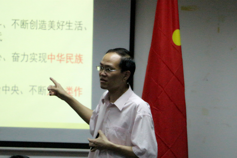 其次,徐超书记作主题为“立足新时代,践行新思想,展现新作为”的党史课。他从时间维度和内容维度对中国特色社会主义进入新时代的基本内涵进行诠释,谈及对国家、人民和社会的影响。其次探讨学习习近平新时代中国特色社会主义思想的重要意义,总结出当代人正是中国特色社会主义强国的建设者,作为党员同志必定要为此目标努力奋斗。紧接着他将习近平新时代中国特色社会主义思想的主要内容概括为“一个主题、八个明确、十四个坚持”,总结出国家新时代的目标和主要矛盾,同时引申出个人也需要清晰确立自己的目标和意识到自身问题并及时改正,因为加强自身建设永远不会错。同时他也提出习近平在十三届全国人大一次会议广东代表团审议的重要讲话精神,分别从“两个窗口”、“三个第一”、“四个走在全国前列”展开讨论。最后他号召青年大学生党员要学习习近平总书记寄予北京大学莘莘学子的厚望,告诫全体毕业生党员要忠于母校,要有自己清晰的目标和规划,要崇尚真与实,要行动起来。唯有不忘初心和脚踏实地,成功才会离得更近!