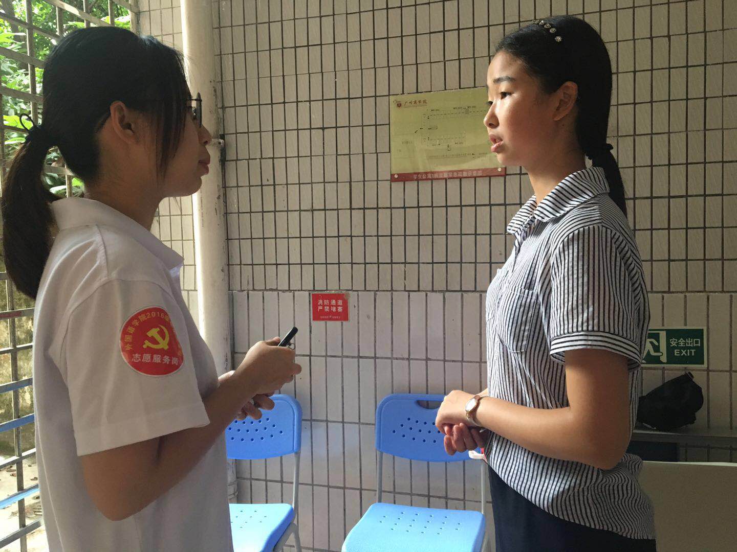 “去年以学长身份迎接新生,今年以党员身份为新生解答疑惑,感觉自己更有使命感。亮出党徽,自己的一言一行都充满责任,因为代表学生党员形象,代表鲜红的党旗。”党员同志梁美徽感慨到。重点发展对象廖天凤谈到:身带党支部志愿服务岗徽章,以学生党支部志愿者的一员参与迎新活动,看到了党员同志奉献不求回报的品质,更加坚定了我向党组织靠拢的信心。
