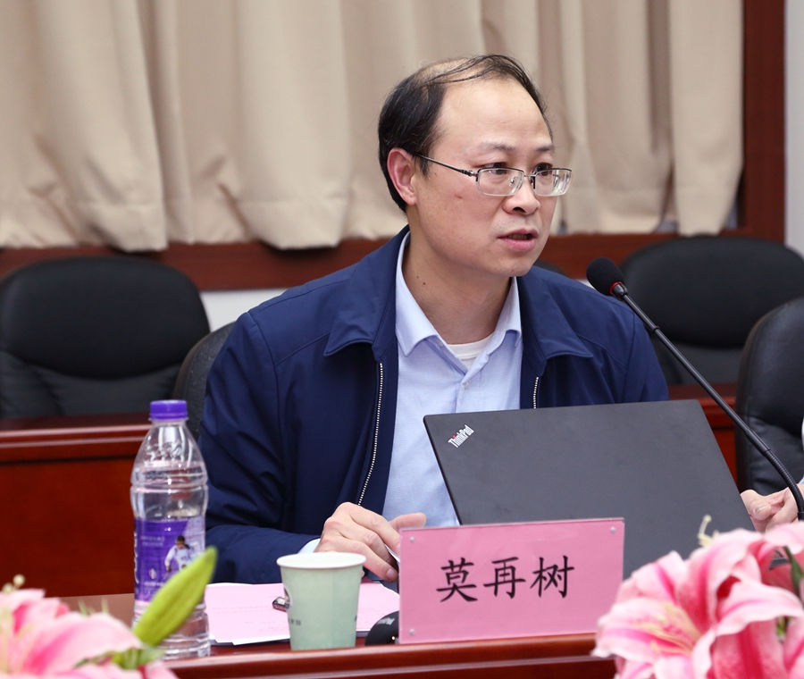 3月29日下午,湖南大学莫再树教授在第二行政楼308为beat365平台官方网站的教师作了“如何申报高级别商务英语课题”的讲座。