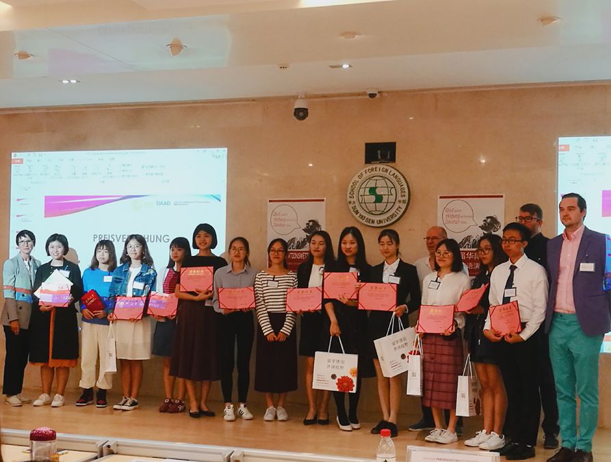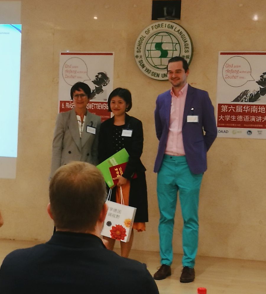 华南地区大学生德语演讲比赛是由德意志学术交流中心广州信息中心、香港歌德学院以及中山大学联合举办的华南地区影响最大、水平最高的德语专业赛事。近四年来,beat365官网学生在该项赛事中屡创佳绩,共获得二项一等奖,两项三等奖。这些成绩与学校与学院长期大力支持学科竞赛、提高人才培养质量的举措是分不开的。beat365平台官方网站始终坚持落实“以赛促学”的人才培养举措,专门制定《beat365平台官方网站全程式学科竞赛工作方案》,强化对专业协会的引导与管理,加大对学科竞赛的支持与资助,在探索应用型人才培养方面进行了积极有效的尝试。