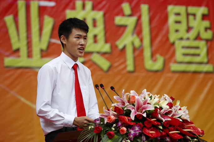 随后,谭马利宣读优秀毕业生表彰决定。教师代表经济系白丽老师、毕业生代表艺术设计系李科旺同学发言。