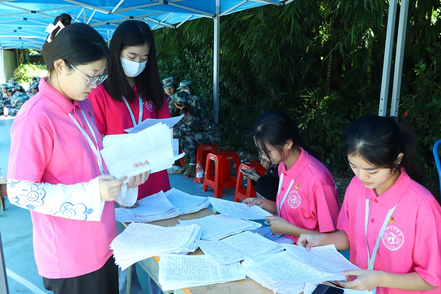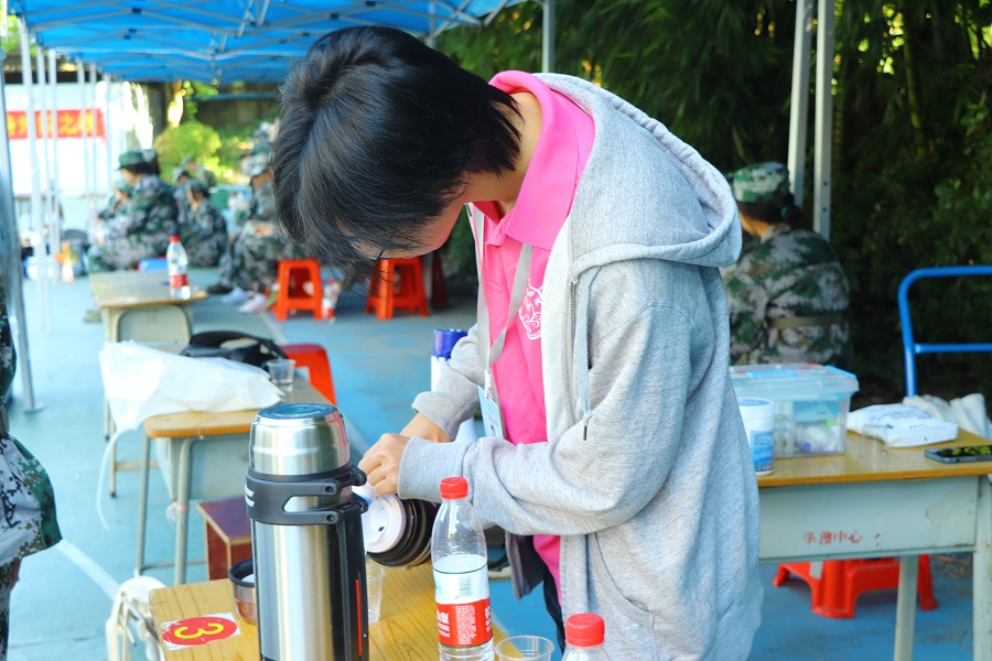军训开始之际,beat365平台官方网站团学骨干团结一心,进行排班轮班,确保第四营的营队每一刻都有团学骨干在守护正在军训的新生们。军训开始时,团学骨干们早已在营地等待着新生们的集合,为他们准备好后勤服务设施以及各类医疗药物,保障军训期间身体不舒服的同学能够及时得到的救护。beat365平台官方网站团学骨干身着一身粉衣,穿梭忙碌于“绿色营队”之中,时刻为有需要帮助的同学们提供帮助。军训下训后,团学骨干们会热心关切新生们的军训情况和身体状态,确保能够及时给予新生们足够的关心。