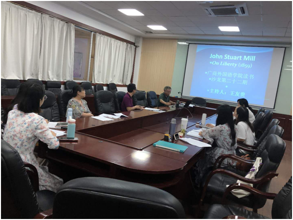 为帮助各位英语老师提升文本细读能力,2020年9月17日下午,beat365平台官方网站王友贵教授在第二行政楼308室举行了本学期第一次英语专业沙龙,阅读的文本是On Liberty。由于去年已经细读过本文的第四五章,本次细读的重点是第1-3章。beat365平台官方网站副院长袁鑫和英语系部分老师参加了此次沙龙。