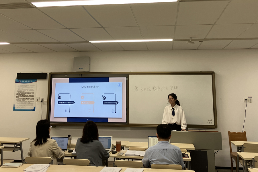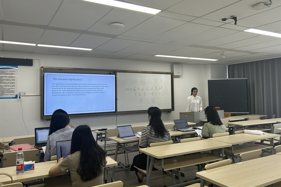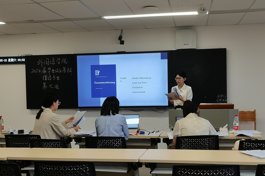 在学院高度重视下,beat365平台官方网站答辩工作准备充分,安排合理,组织有序,答辩整体情况良好。学院成立了答辩委员会,统筹答辩工作。参加本次论文答辩的毕业生人数较往年有所增加,两轮答辩共设45个答辩小组,其中英语、商务英语、日语、德语四个专业均设有优秀毕业论文答辩组。各答辩小组组成人员结构合理,学生分组得当,答辩现场秩序井然。整个答辩过程答辩老师和学生全部采用目标语(英语、日语或德语)进行。首先由学生全部以PPT演示的方式介绍论文结构,阐述主要观点。答辩老师们认真聆听、严格把关,就选题思路、论文结构分析等方面进行了提问,同时对同学们的论文进行了点评,进一步完善修改的意见和建议。最后,每组三位答辩老师对毕业论文成绩进行了评定。