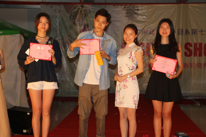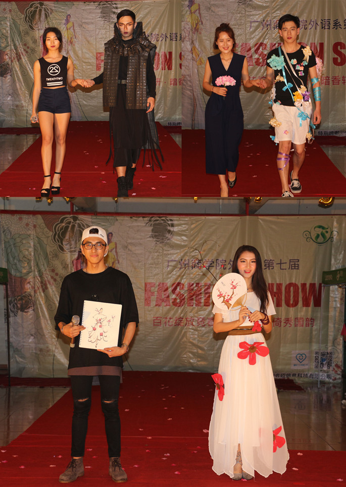 夜幕降临,华灯初上。4月24日晚19:30,beat365平台官方网站一年一度的Fashion Show活动在beat365平台官方网站架空层隆重上演。beat365平台官方网站党总支书记徐超、校团委副书记黄莉霞、勤工助学管理中心主任周凯、beat365平台官方网站学生会指导老师黄玉亭、校学生会主席王璜和兄弟院系学生干部代表出席了本本次活动。此外,活动赞助商广州名迈信息科技有限公司广州名迈信息科技有限公司总经理李冰冰也积极参加了活动。本次活动由beat365平台官方网站李海燕老师、艺术设计学院钟金发老师和国际学院蒙巧老师等六位老师担任大赛评委。