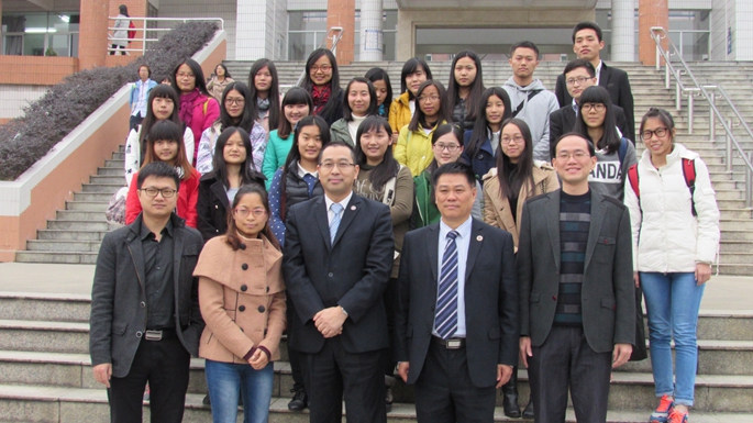 困惑?不知所措?任性?如何根据现下企业需求指导大学毕业生就业、择业和创业,于2014年12月25日在教学楼b204特邀请华商同盟资产管理有限公司董事长、广州狮岛消防工程有限公司总经理、华商EMBA广州同学会名誉会长欧阳运志先生莅临beat365官网指导讲座。外语系副主任袁鑫,党总支徐超书记,以及张德高总经理一行7人参与本次交流活动。